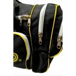 All new players wheelie bag. With a large central lockable, strong zippered compartment, 2 end pockets, large side pocket and bottle holder. The bag also comes with a shoulder carry strap. Available in the all new black/yellow design, Bag size 60 x 30 x 36 CM.